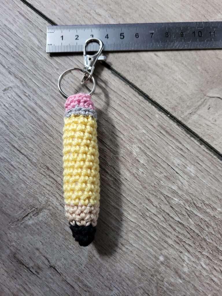 Mini potlood die je kunt haken in elke kleur. Leuk als sleutelhanger en/of als klein cadeautje.